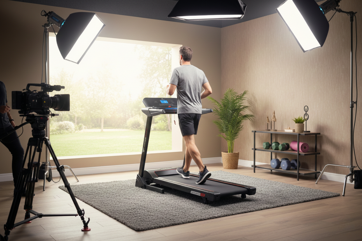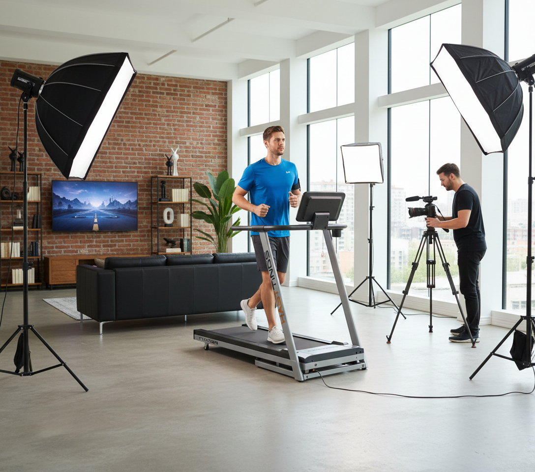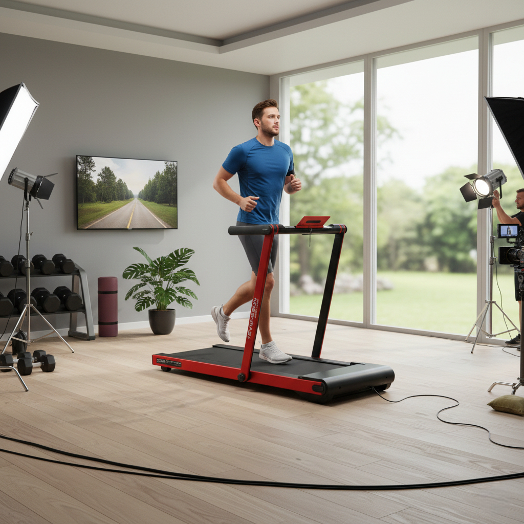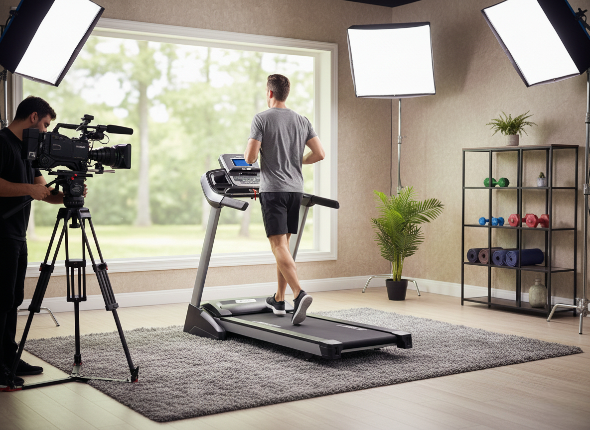 У беговой дорожки для съёмок важнее тишина, стабильность без тряски, аккуратный дизайн без лишних стоек и удобные ракурсы для камеры.