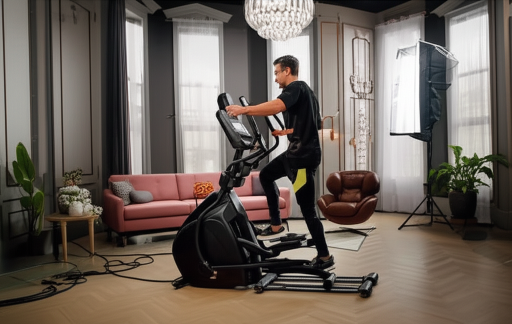 У эллиптического тренажера для съёмок больше внимания уходит на плавность хода, устойчивость, внешний вид и тишину — всё, что влияет на картинку и звук.