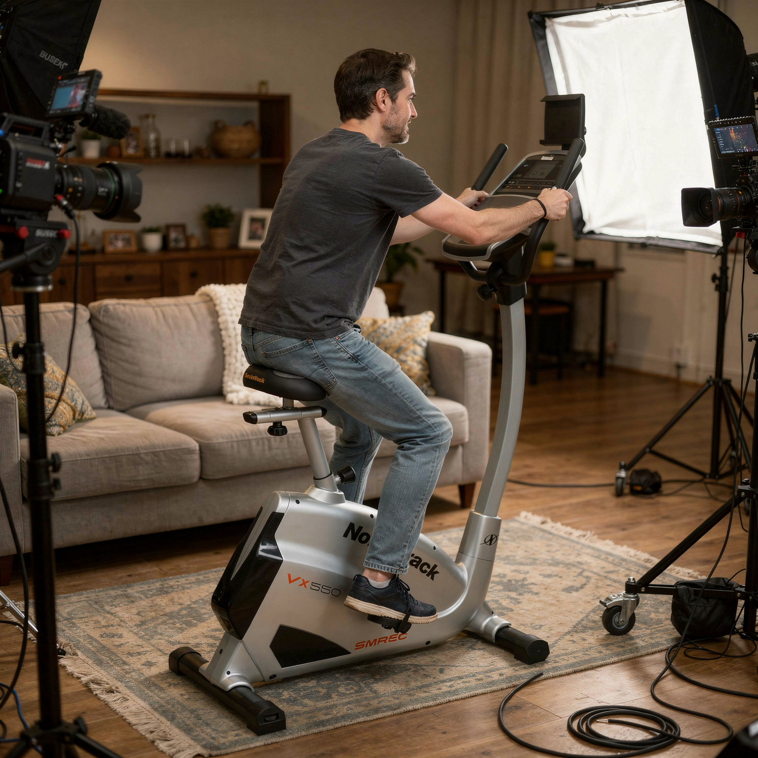 VX550 — аккуратный, тихий и “дружелюбный” к интерьеру велотренажёр, который отлично заходит в кадр. Для квартирных съёмок это почти идеальный компромисс между размером и функциональностью. Мне нравится делать план, где тренер поворачивает голову в камеру, а позади на дисплее бегут ватты и RPM — на VX550 этот кадр получается без долгих танцев с фокусом.