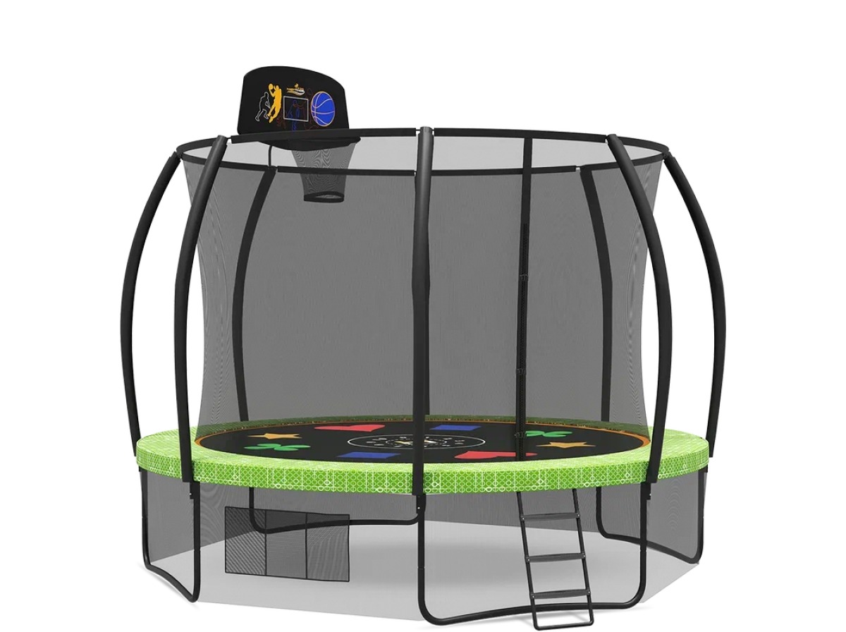 Hasttings Air Game 3,66 м — профессиональный спортивно игровой комплекс с интегрированной баскетбольной системой SlamDunk Pro для детей 6–14 лет.Модель диаметром 366±0.4 см оснащена прыжковой зоной 315 см, выдерживающей динамические нагрузки 160 кг благодаря 72 коническим пружинам с покрытием QuantumBounce (многослойное цинк алюминиевое напыление + керамическая пассивация ZrO2). Каркас из труб Ø42.5±0.3 мм с шестью веерными опорами защищен гибридным барьером: плазменное электролитическое оксидирование → хроматирование → эпоксидно-полиуретановое покрытие RAL 6024-Pastel Green → ультрафиолетовый стабилизированный лак.
