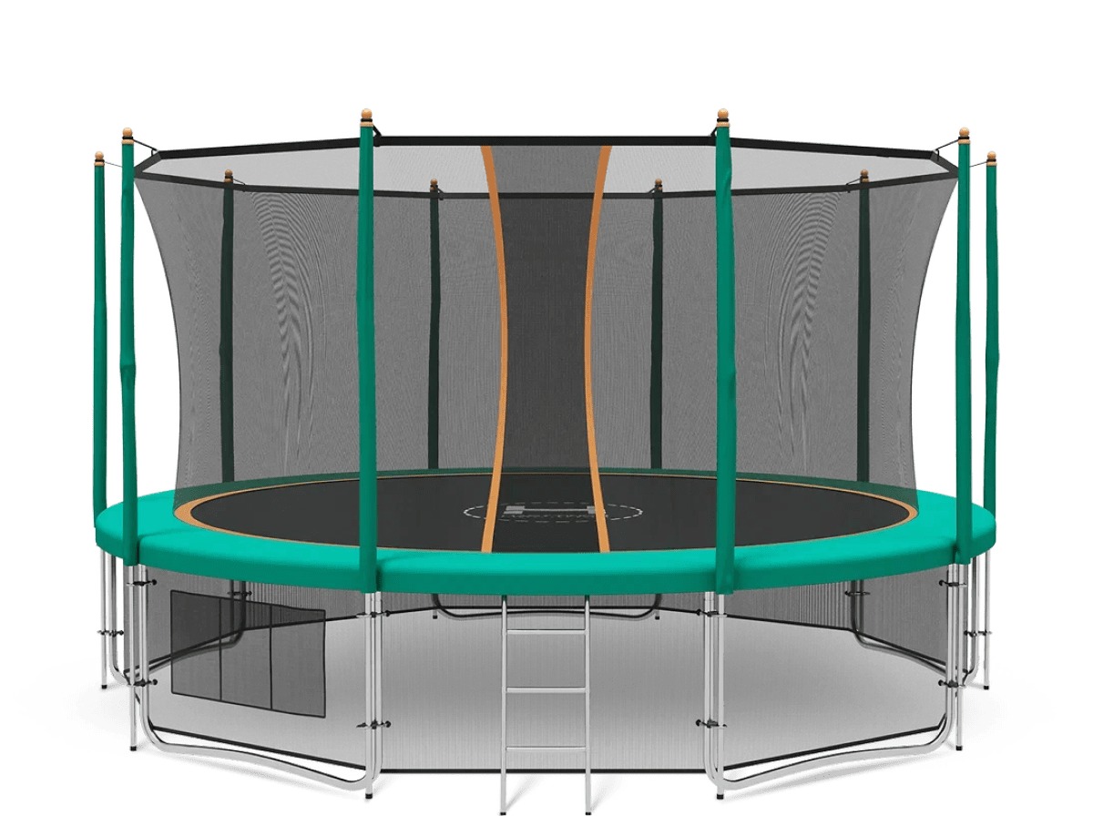 Hasttings Classic Green (4,26 м) — премиальный семейный батут с усиленной конструкцией и внешним диаметром 4,26 м (прыжковая зона ≈3,9 м).