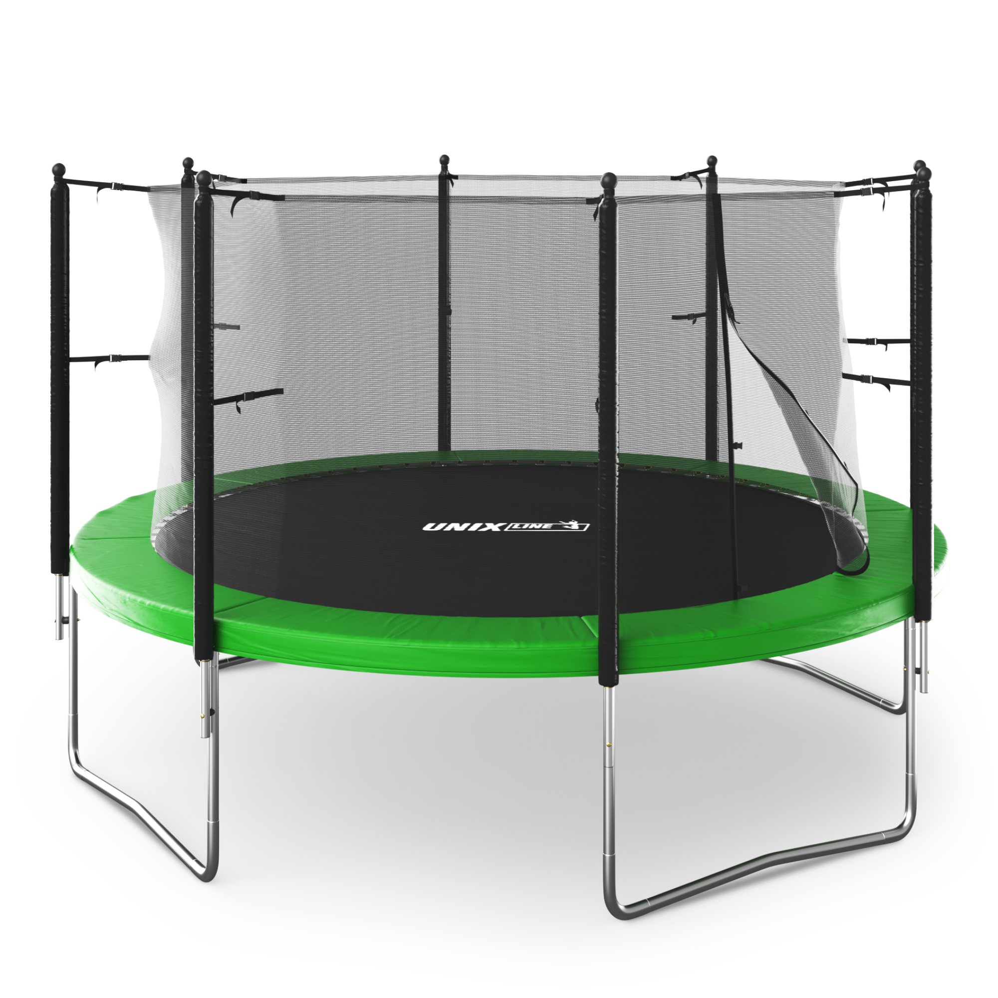 Батут UNIX Line Simple 12 ft Green (3,66 м) — уличная модель премиум-класса с внутренней защитной сеткой для семейного использования.Конструкция