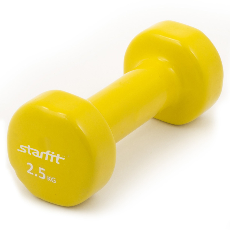 Гантель виниловая STARFIT DB-101, 2,5 кг, желтая 1/8