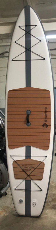Сап-борд рассчитан на пользователей до 120 кг, размер доски 10,6 футов (323см*84см*15см), на нем комфортно проводить время вдвоем.